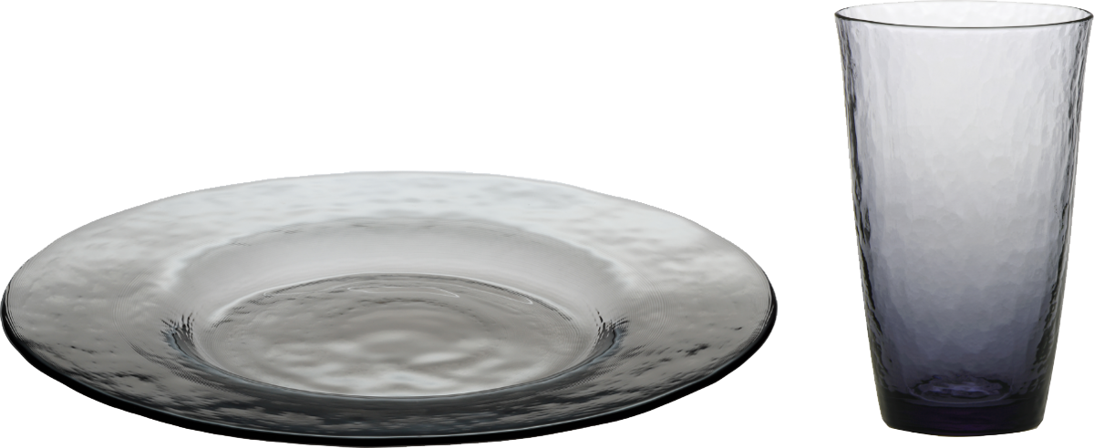 原料に環境規制された鉛を含まない「ファインクリスタル」に、当社独⾃の全⾯強化加⼯を施した「ファインクリスタル・イオンストロング」。